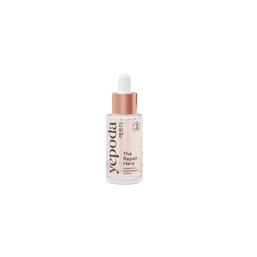 Experience the fusion of probiotics and niacinamide. The Repair Hero works to replenish your skin's natural balance, intensely hydrate, and combat signs of aging, resulting in a smoother, regenerated, glowing complexion.